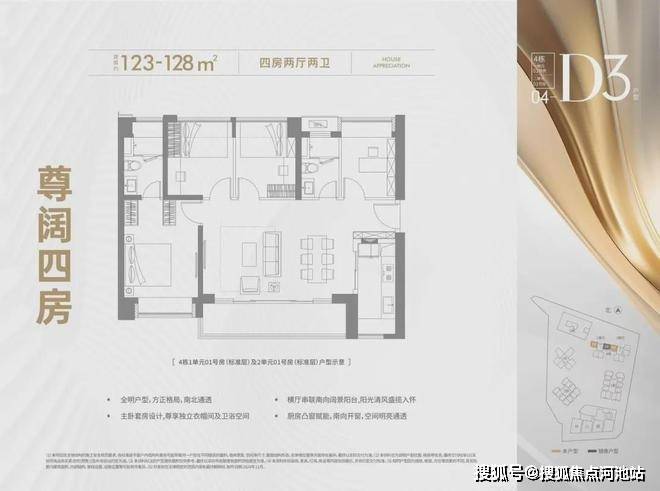123-128平4房2厅2卫。
