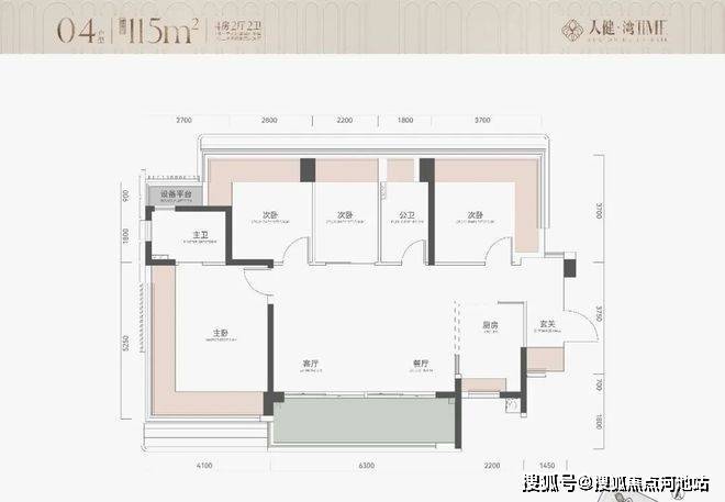 04户型 115㎡四房:727-892万(大横厅南北通)