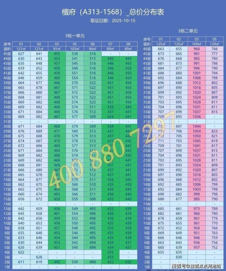 折后均价公布,3栋1单元均价4.98万,3栋2单元均价5.34万,折后均总价在412-944万!