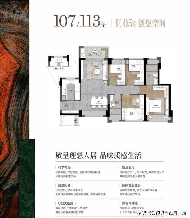 107-113平:4房2厅2卫,套内净使用率在80%,南北通透