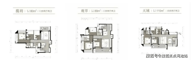 80㎡3房2卫,空间利用率极高,堪称刚需福音。