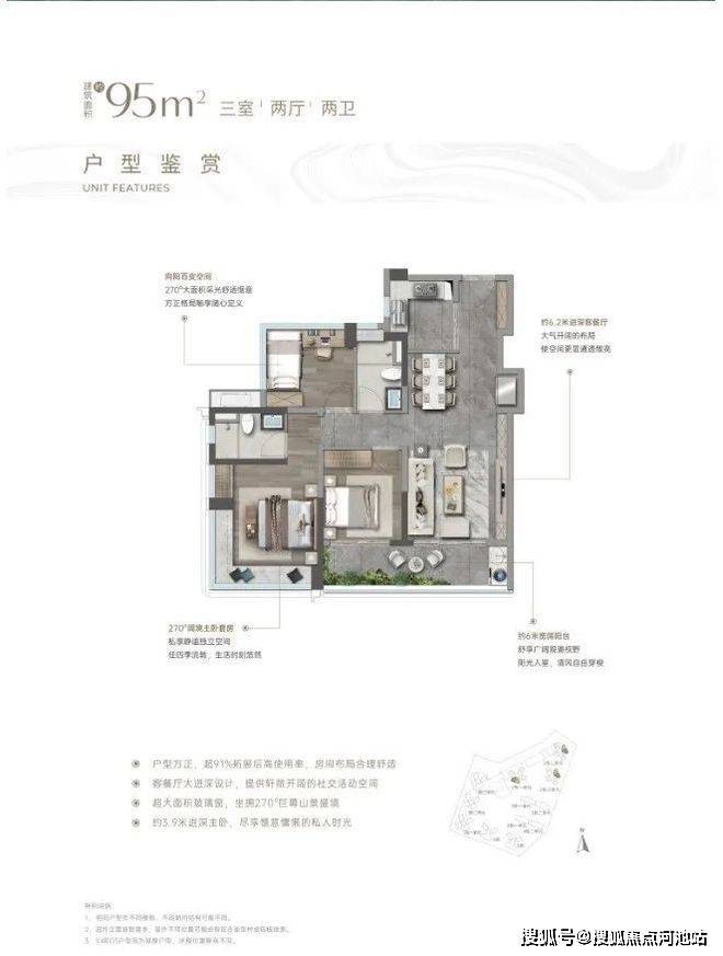 得房率突破:95㎡户型套内实测87㎡(得房率91.6%),相当于外围板块110㎡实用面积;