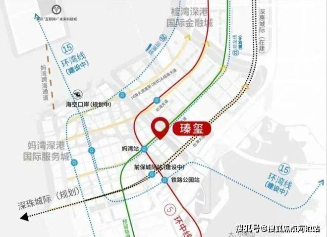 交通地铁:项目位于5号线,步行500米妈湾站、步行700米到铁路公园站,同时铁路公园站还规划了5号线与9号线换乘,未来将于宝安新老中心、南山重点区、蛇口、西丽、前海片区串联起来,此外,将还有15、21、27、穗莞深城际等多条轨道交通串联前海与其他重点片区。
