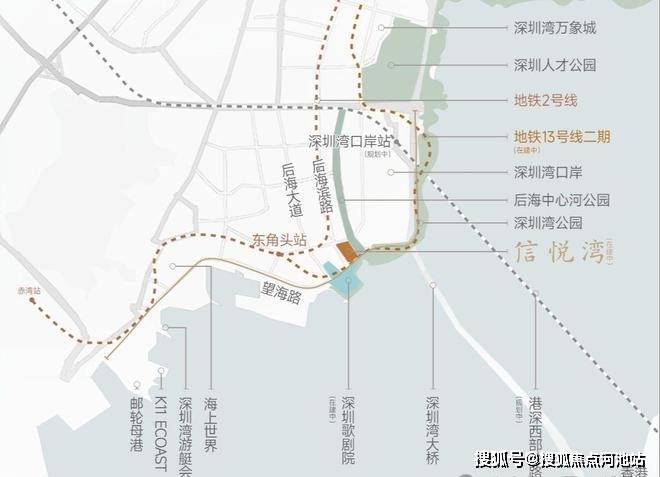 中信信悦湾(元湾府),项目坐落于南山蛇口望海路与后海滨路交汇处,堪称深圳湾 “终极收藏级” 地块 —— 三面环海,拥有永久性无遮挡一线海景,南侧与斥资 30 亿打造的深圳歌剧院仅一路之隔,东侧远眺深圳湾及香港天际线,西侧紧邻蛇口山公园,真正实现 “推窗见海,出门遇艺术”。更关键的是,这里处于蛇口国际海洋城、后海总部基地、深圳湾超级总部三大核心规划交汇处,既能享受成熟豪宅区氛围,又能承接城市发展红利,地段稀缺性无可复制。