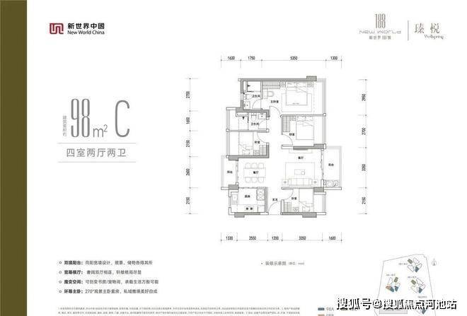 新世界188号臻悦户型分布示意图: