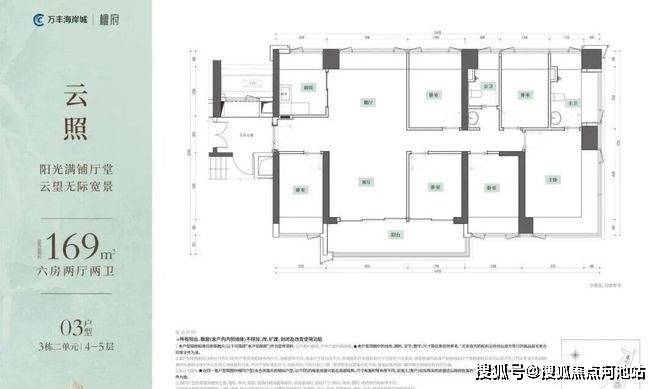 超16米东南采光面,阳台超7米宽;主卧进深4.5米,L型飘窗可270度景观。