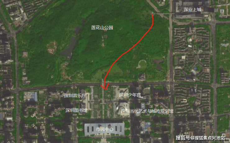 穿过莲花山公园即可到达 市民中心