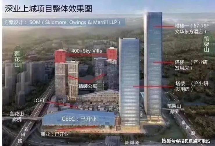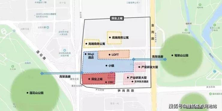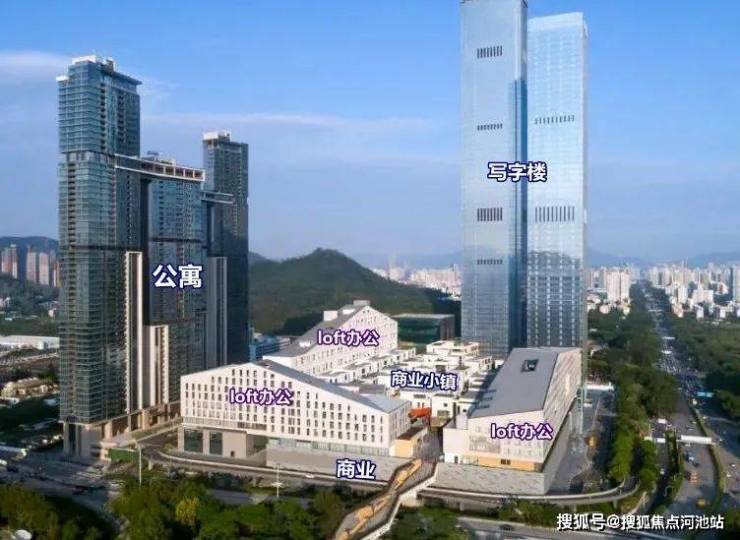 【深业上城】总建面达120万㎡,包含公寓、写字楼、商业、商业小镇、loft办公等多种业态▼