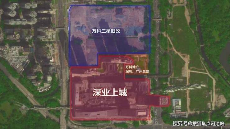 【深业上城公寓】项目东北侧是 万科地产深圳、广州区域总部,北侧这一大片空地是总建面90万㎡的万科三星旧改