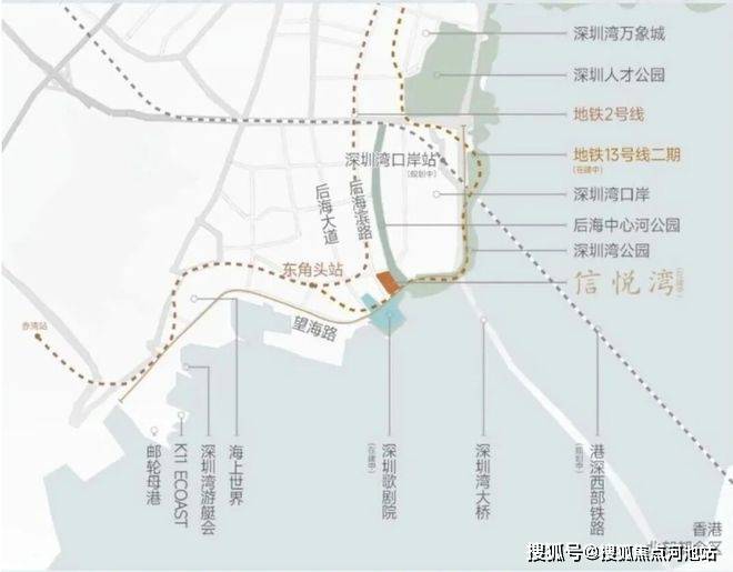 1. 交通配套:地铁有 2 号线东角头站(700 米),在建 13 号线歌剧院站(2025 年通车),1 站到深圳湾公园,4 站到后海;自驾可通过望海路、后海滨路直达前海、宝中,经深圳湾口岸 2 站直达香港。