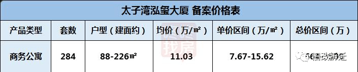 太子湾泓玺部分公寓备案价