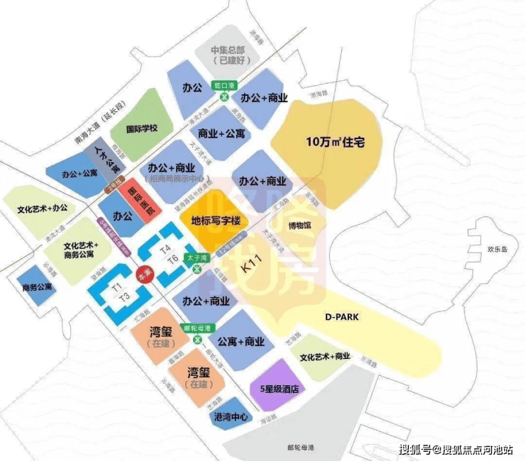 太子湾的商住项目分4期开发,周期长达9年。其中,三期规划有一栋350m的超高层写字楼;四期为住宅,即现在的蛇口港码头所处区域,届时会推倒重建,新的码头搬迁到太子湾母港边。