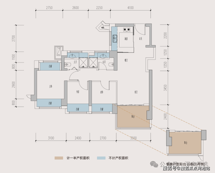 89㎡A户型,南北通透,客厅3.5米宽,五开间朝南,主卧双飘窗,可改四房,赠送面积约24.5㎡,得房率高达104.87%。