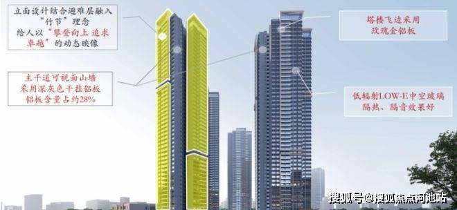 奕式的外立面对标的是写字楼和深圳15万+豪宅,采用的是铝板幕墙+LOW-E玻璃,建筑风格是极简风,干净平整,很有质感。