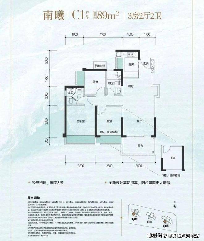 户型降维打击:89㎡三房实得83㎡(得房率93%)、114㎡四房实得105㎡,比隔壁满京华多出1个房间。