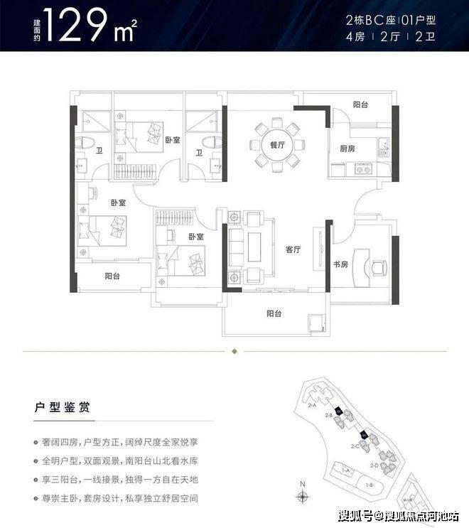 建面约78-129㎡3-4房瞰景阔宅,最高近10m直连观景阳台阔绰竖厅,低层看园林、中高层双面无遮挡瞰山景。