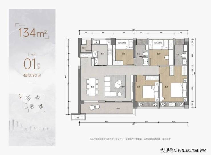 135平的大4房则是做了横厅设计, 6.75m的超长开间 公区极适合一家4口-5口自住使用,周末都能在家里开patty了