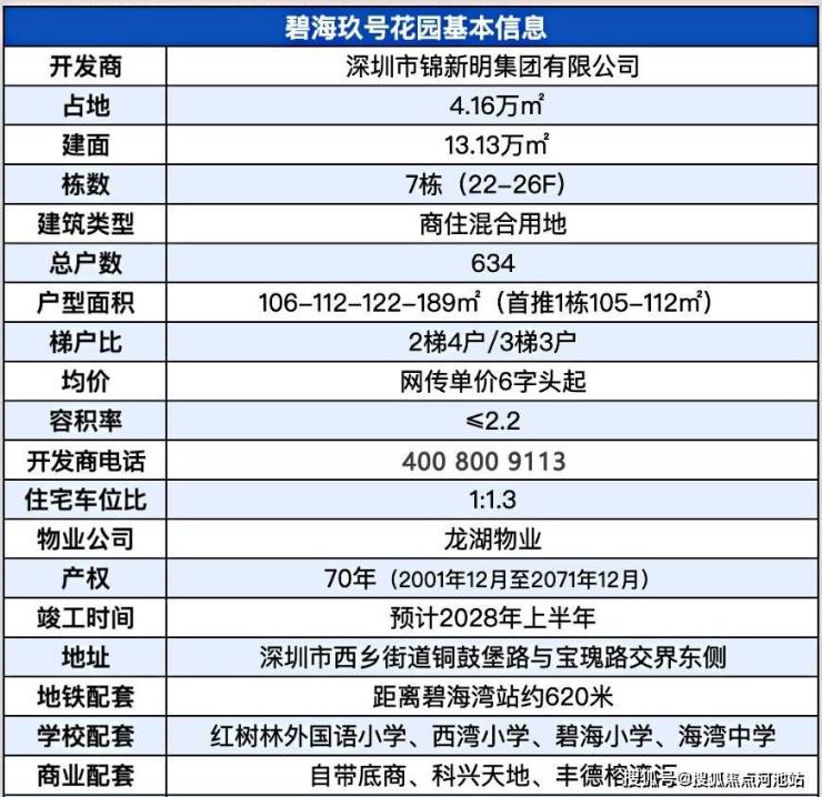 最新消息:宝安碧海新楼盘,碧海玖号花园已于2026年4月10日正式开放实体洋房,本次开盘首推1栋,面积有105-112㎡的4房2厅2卫户型,共100套房源,这次碧海玖号开盘价应该是在7万/㎡左右,起步价也是接近700万起,暂定在2028年上半年带精装交房。如需了解本楼盘更多详情,欢迎来电咨询深圳碧海玖号花园开发商售楼处免费400咨询/预约电话:400 800 9113(官方发布)中介请勿扰,因近期参观样板房的人员太多,本项目营销中心暂不接受临时到访,为不耽误您的行程,过来楼盘现场参观样板房请务必记得提前来电预约,预约看房的话最终房价还能更加优惠,最终价格包您意!