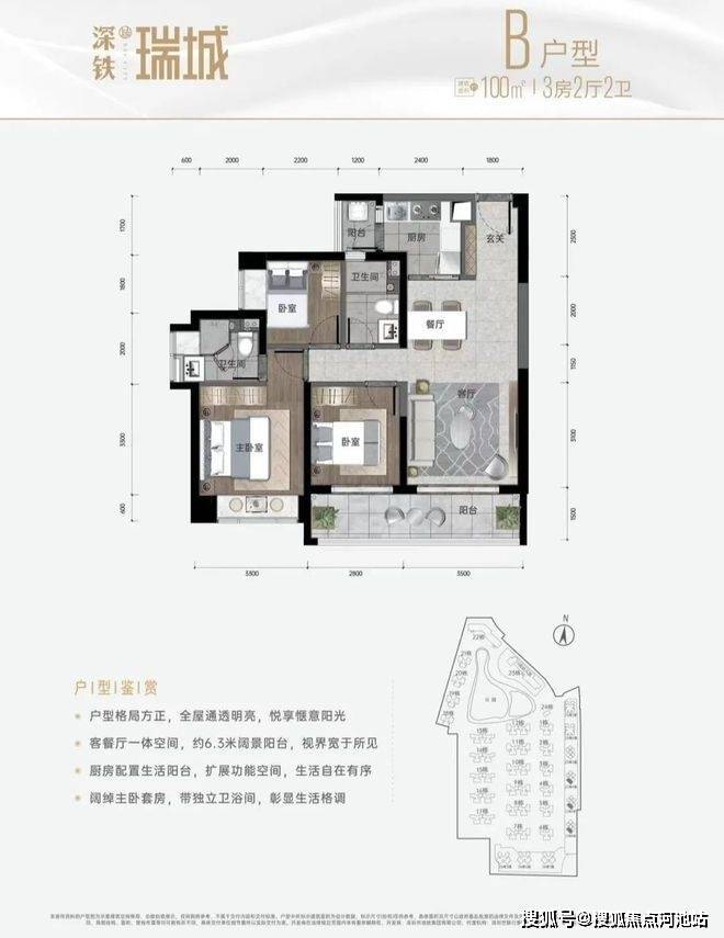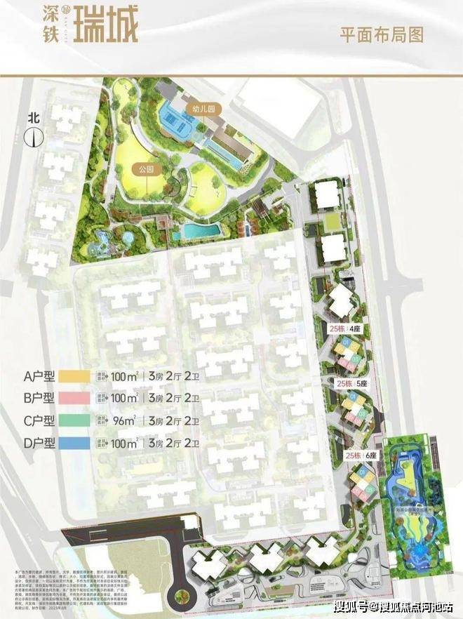 深铁瑞城,总占地面积约18.9万㎡,总建筑面积约64万㎡,计容建筑面积约57.7万㎡,容积率3.06,绿化率25%,项目共分3期开发,总规划4770户(其中商品房2770套,人才房606套,保障房1394套),停车位3202个(占比1:0.67)。