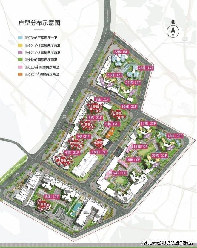 2号地块:6/7/8/9/10栋商品房21F,11/12栋商品房17F,13栋是幼儿园。