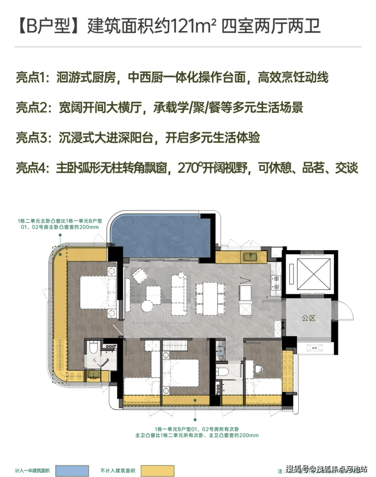 建面约121㎡开阔横厅高配四房;