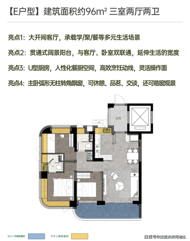 建面约96㎡首置优选三房。