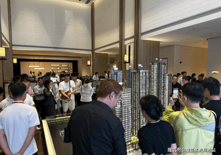 翰熙典居,近期展示中心人潮汹涌,坐电梯排队、看样板房排队....现场人多到像逛展览一样。