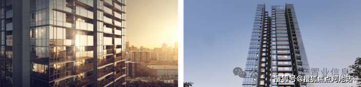 整个外立面色调以深灰色为主,与周边腾讯滨海大厦等极具地标性的超高层建筑相呼应,好似形成艺术对话,同时也强化了翰熙典居作为“城市封面”的辨识度。这里说一下,翰熙典居距离腾讯滨海大厦仅一路之隔。