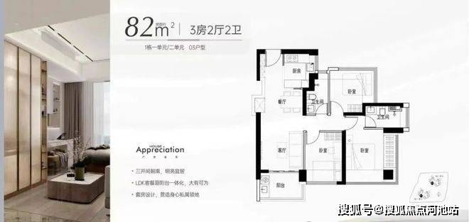 82㎡的3房2厅2卫,折后总价280万起,单价约3.59万/㎡起。