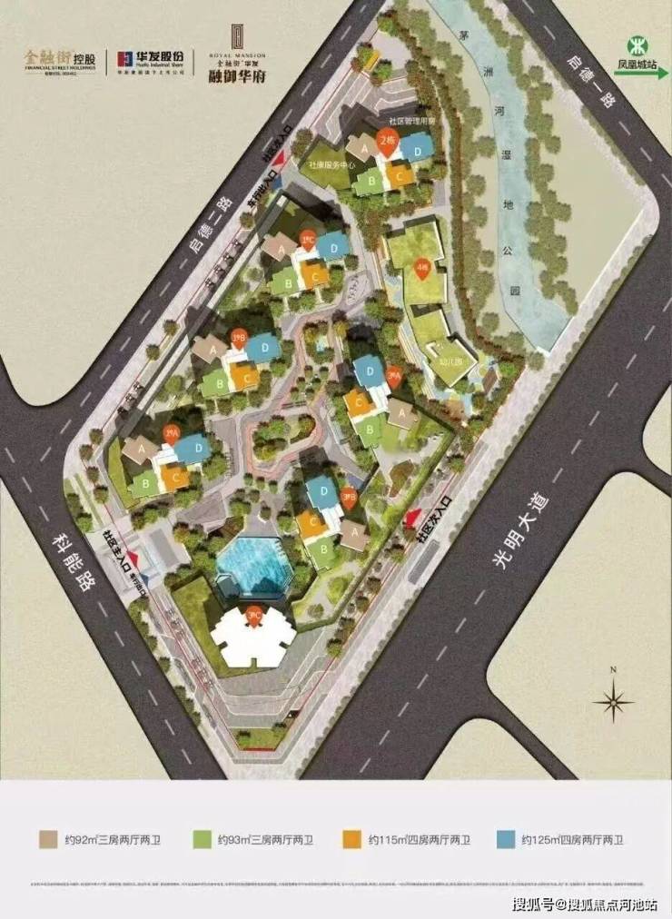 金融街华发·融御华府位于光明区光明街道,光明大道西侧,近在建地铁6号线观光路站,距离在建地铁6号线“观光路站”约150米,与龙光玖龙台一路之隔。项目占地面积约2.4万㎡,计容建面约10.8万㎡,可售住宅建面约8.4万㎡,建成后移交政府的人才房约1.4万㎡,容积率4.5,配建社区商业、9班幼儿园、社康、菜市场等设施。