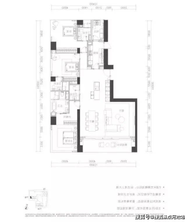 项目将推出的商务公寓均为大户型,有230㎡、260㎡、280㎡、350㎡、400㎡、480㎡等多种,为3-4房。