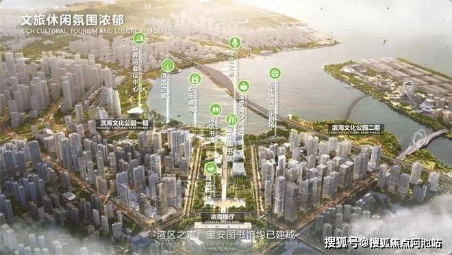 一、核心地标:南向正席,网红生活主场 项目南向直面欢乐港湾,80万㎡滨海文化公园(2025年全运会闭幕式举办地)举步即达。这里汇聚湾区之光摩天轮、湾区之声演艺中心、庆典广场等顶流地标,钟书阁、网红餐饮等业态已落地,日常散步、亲子游玩、休闲打卡无需远行,下楼即享滨海网红生活。