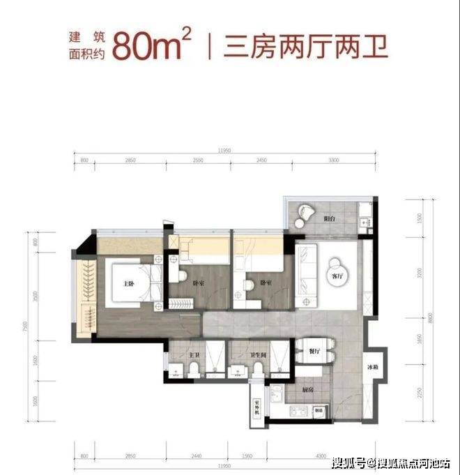 80m²的3房2厅2卫,折后总价297-322万/套,单价3.71-3.98万/m²。