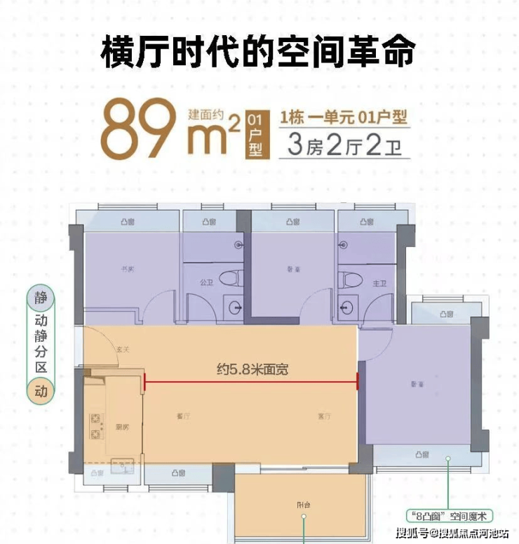 特有的“8凸窗”空间魔术——远洋采用创新布局,实现超高赠送率,实用率达90%,两卫设计破解晨间拥堵。
