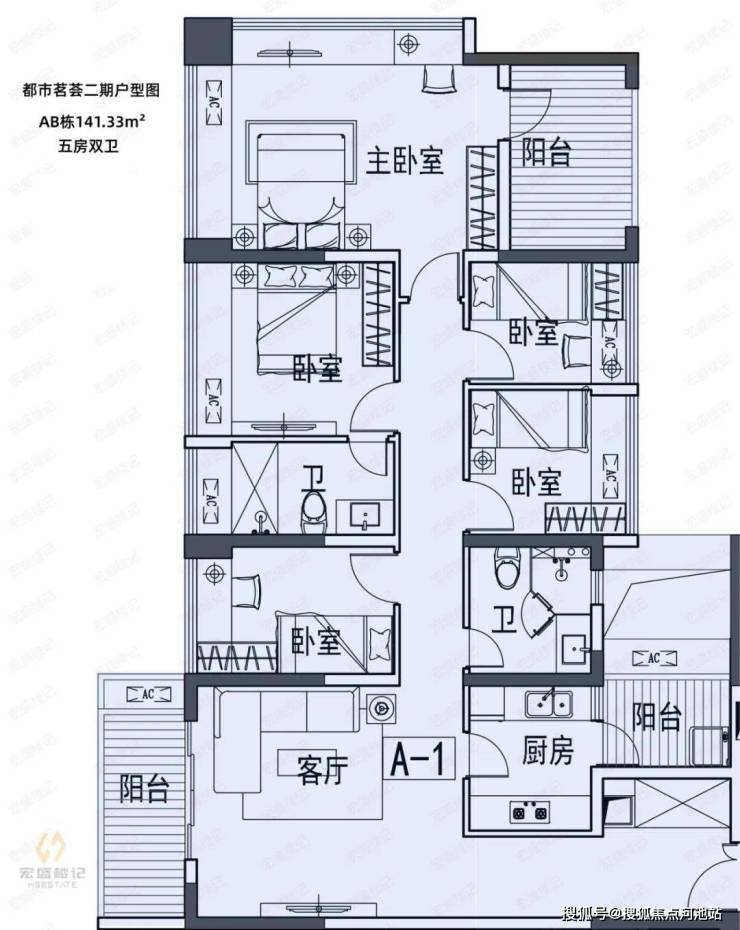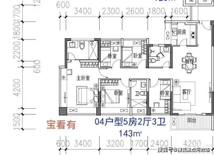 约141㎡设计为5房2卫。