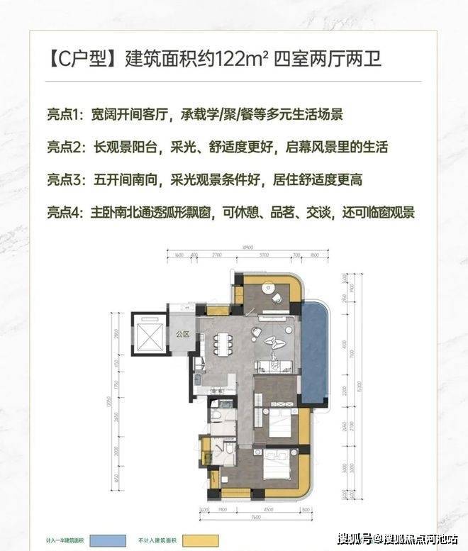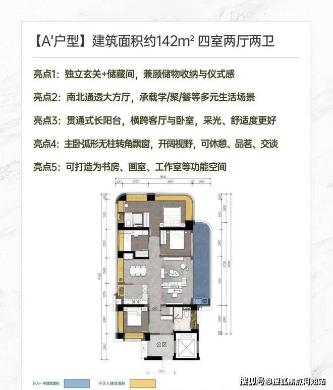 建面约142㎡南北方厅 阔景四房;