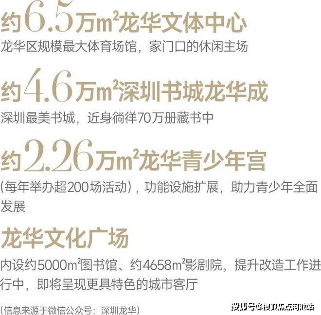 文体休闲方面,“一城一广场两中心”四大重量级配套环绕——深圳书城龙华城、龙华文化广场、龙华文化体育中心、龙华文化艺术中心,满足日常文化休闲需求。其中龙华文化体育中心规划占地超6万平方米,政府投资超1.4亿元,建成后将成为龙华最大的体育中心,计划明年年底竣工,未来将成为业主运动锻炼的首选之地。