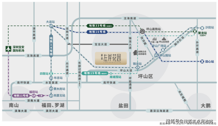 地铁19号线(规划中):坪山首条区内地铁线,项目临近14/19号线换乘站锦龙站,南塘围站。