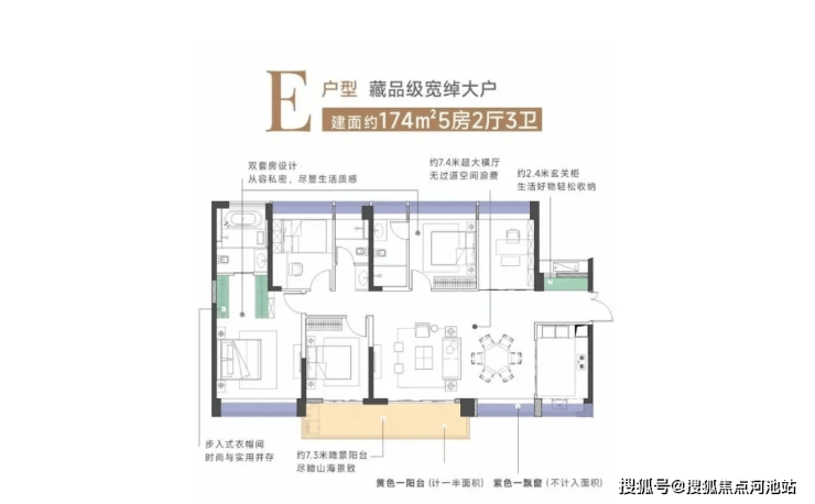 1单元:建面约174㎡五房两厅三卫,E户型
