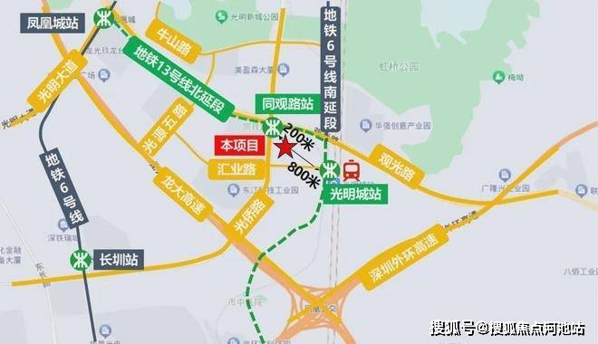 项目位于光侨路与观光路交汇出东南侧,与南方科技大学附属光明凤凰学校、在建的13号线二期北延同观路站一路之隔。