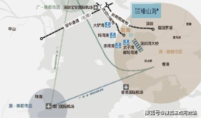效率前海-“亚洲最大综合交通枢纽”3大机场、4大港口、6大路轨、3大高速、7大地铁,以“海-陆-空-铁-轨”五维交通体系,形成世界一流经济轴