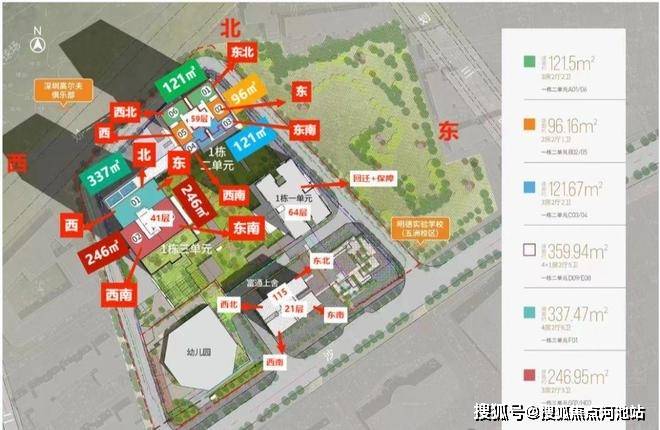 【梯户比】1栋2单元4梯6户,46-56层2梯2户,3单元公寓2梯3户