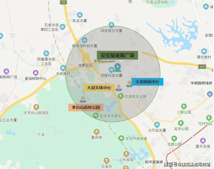 安宏基星曜广场项目位于深圳市龙华区中核,西望羊台山,毗邻地铁6号线,三站可达中心区,具有得天独厚的交通优势。星曜广场为建面约17万方标杆综合体,集萃写字楼、商业、住宅、产业园于一体。