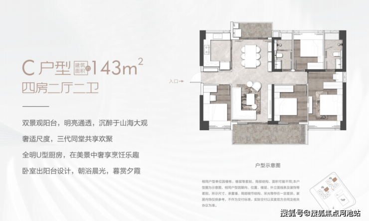 建面约143平4房2厅2卫: