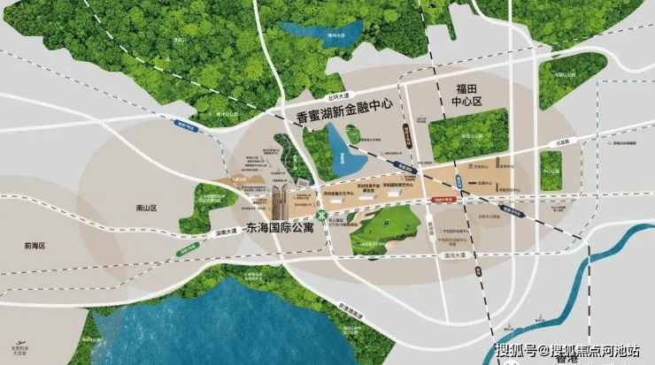 北 :塘朗山郊野公园 香蜜公园 香蜜湖湖景 香蜜湖豪宅全景