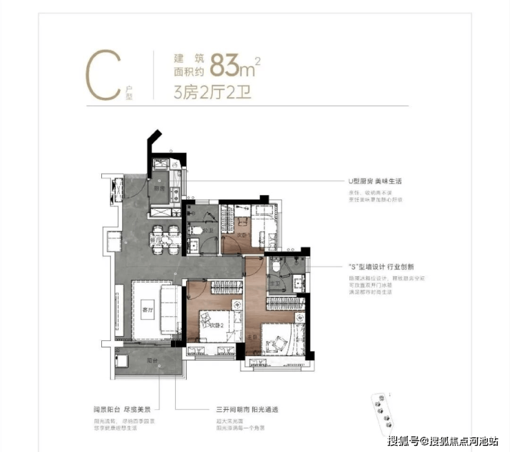 83㎡的3房2厅2卫,折后总价218万起,单价约2.62万/㎡。