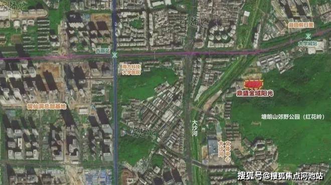 鼎盛金域阳光位于大沙河东侧,珠光北路和留仙大道交汇处的南侧。
