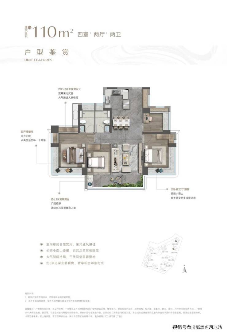 其中,6.6米的270°大阳台与主卧270°飘窗景观可直面大南山一线山景。