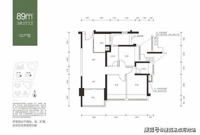 全新2期 震撼来袭 82-89㎡3房2卫 宝藏户型