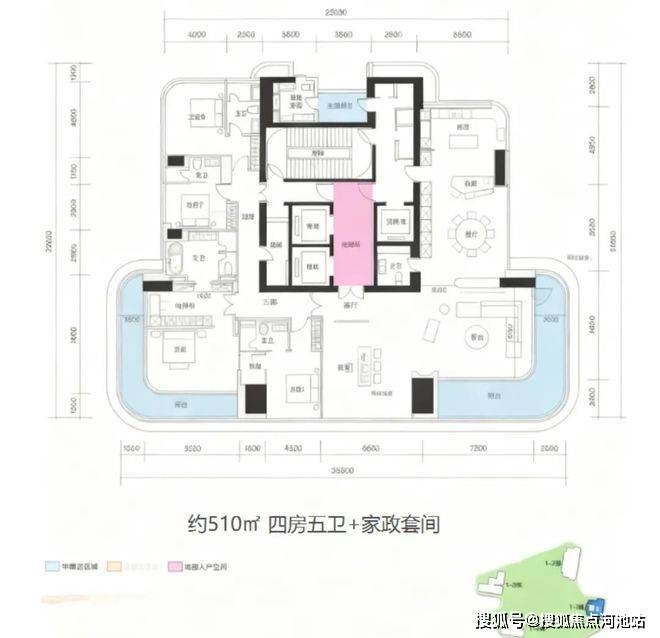 510㎡户型,梯户比3梯1户设计。